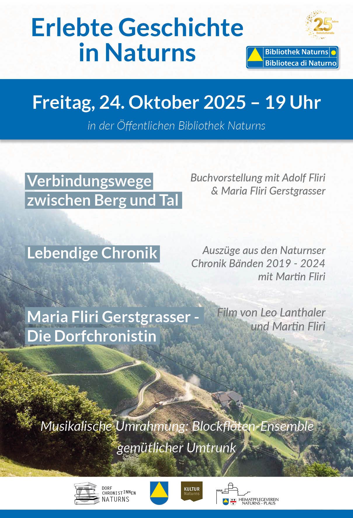 Gemeinde Naturns, Bibliothek Naturns, Heimatpflegeverein Naturns-Plaus und den Dorf-Chronistinnen Naturns