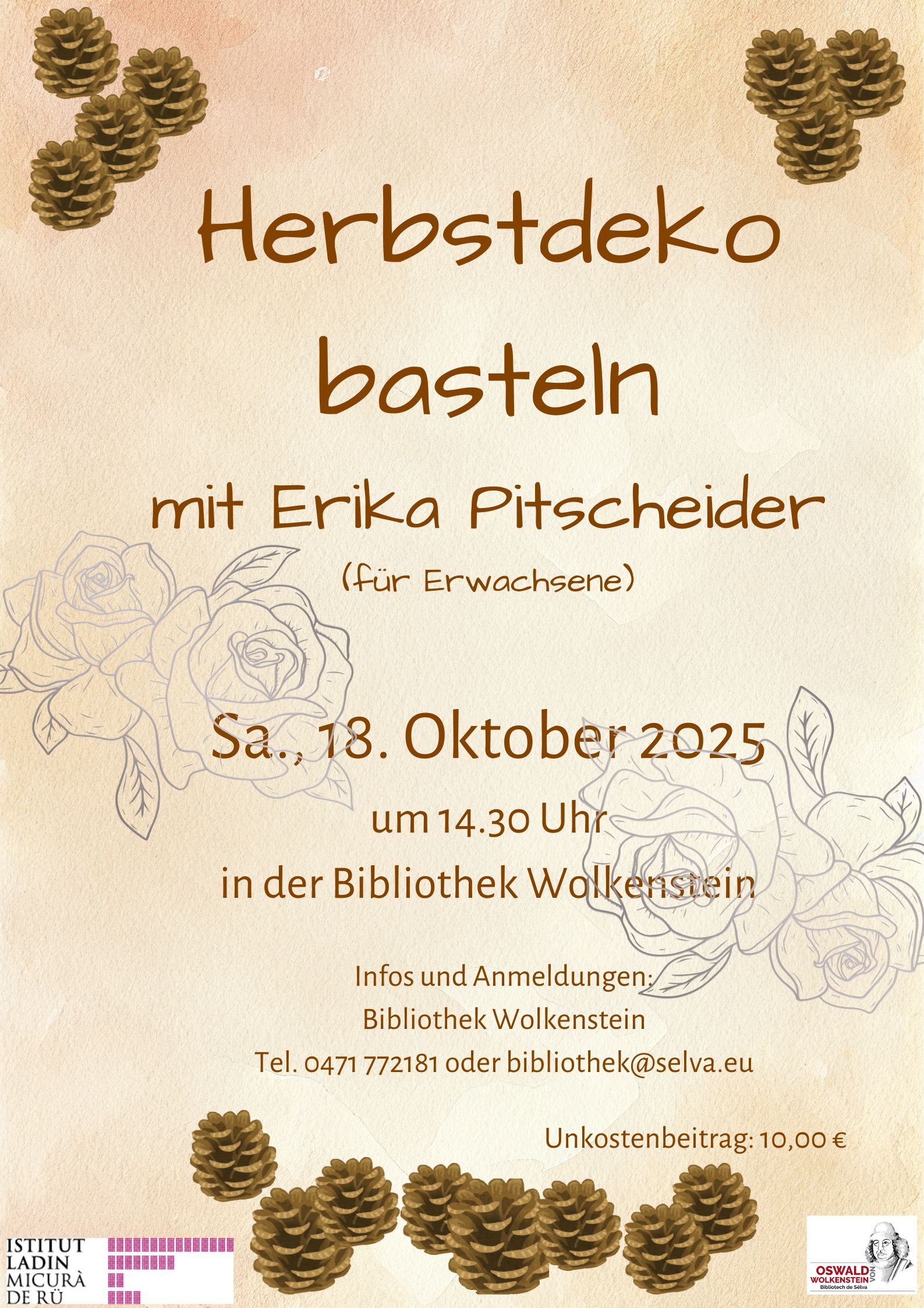 Gemeinsam mit Erika Pitscheider gestalten wir fantasievolle Herbstdekorationen aus Naturmaterialien, Papier und anderen bunten Bastelideen.
